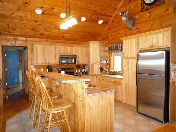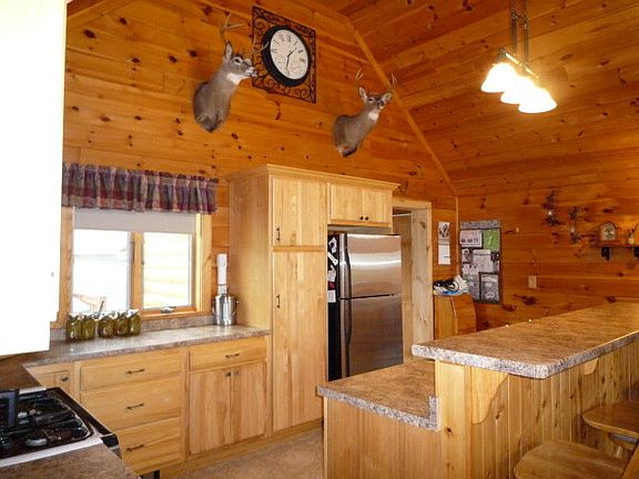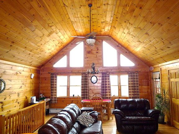 SARANAC Wonderful bright and spacious custom log home located on a private 9.9 acre lot. Full walk-out basement. The Great Room is the heart of this home. It features a soaring cathedral ceiling and many windows framing the awesome views of the Lake and Mountains. Adirondack decor throughout home especially custom bath vanity and family room bar. Walkout basement offers a 4th bedroom; an office; laundry room; storage room and a large family room with wood stove for entertaining. Large 2 car garage offers loads of storage above. House is wired with a back up generator fueled by propane and comes on automatically.