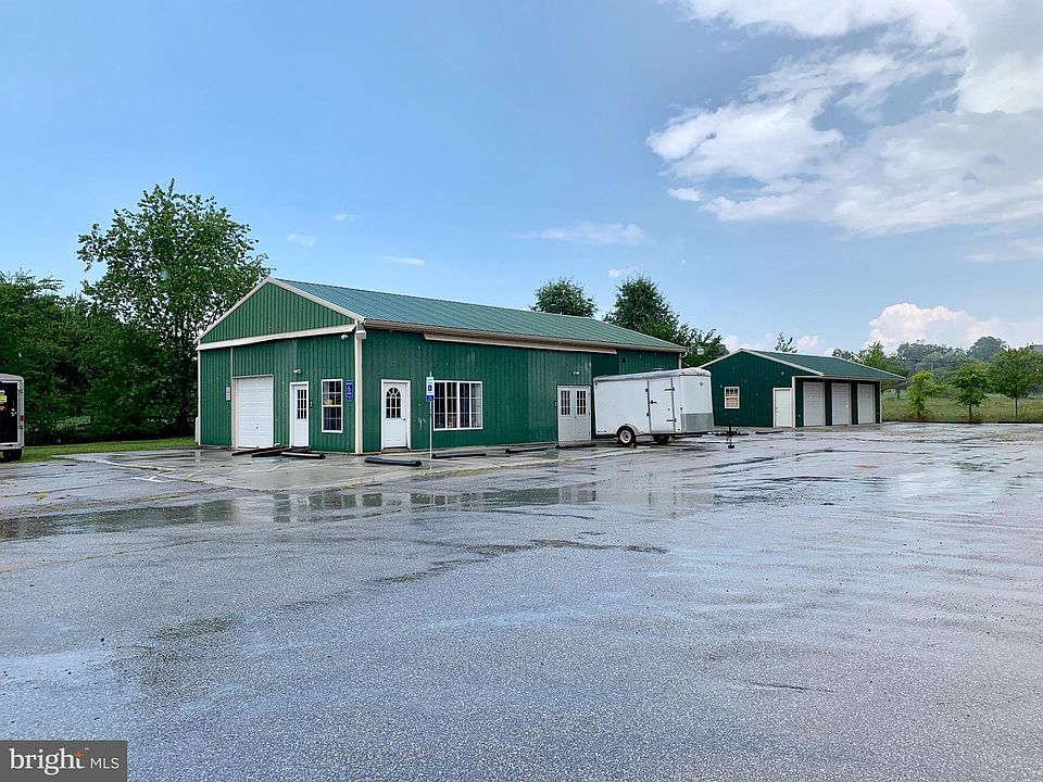 1.09 Acres Zoned Highway Commercial. Property features a 32x56 metal building with showroom, handicapped accessible rest room, hot water, forced air propane heat, emergency lighting, office with clerk window, double door front entrance, and side loading with over head door. 200 Amp service, well, holding tank, 24x40 3 bay garage, and a 12x20 shed. Lot offers 36 paved parking spots, and billboard lease conveys (income $3,000 + per year). Property has wonderful visibility, and next to MD line.