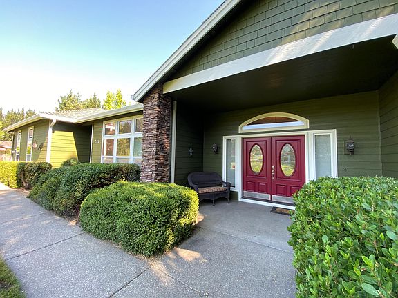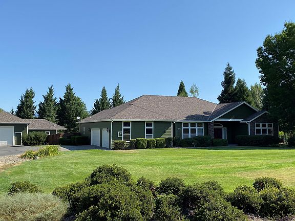 Extraordinary location near Grants Pass Golf Club in District 7 schools! Home sits on over 1 ac. of flat landscaped grounds, detached shop/RV garage, plus additional guest house, in-ground pool, quiet cul-de-sack. Lg. entry into living area w/arches/columns, tall ceilings, gas fireplace insert, lots of light. Split floor plan, centrally located kitchen, custom cabs, granite counters, coffered/tiered ceilings, crown molding, recessed lights, glass top range, double oven, microwave, BOSCH D/W, double door fridge, wood floors, breakfast bar overlooking dining nook. Large master w/access to covered patio overlooking in-ground pool, master bath w/double sinks, cultured marble counter/shower surround, soaker tub, tile floors, privacy toilet, large walk- in closet. Home has lg. bedrooms/closets/linen space, additional office/den/formal dining area plus additional guest house/RV/shop w/front and rear garage doors in addition to the 3-car garage. Loads of parking. Minutes F/Asante Med. Cntr.