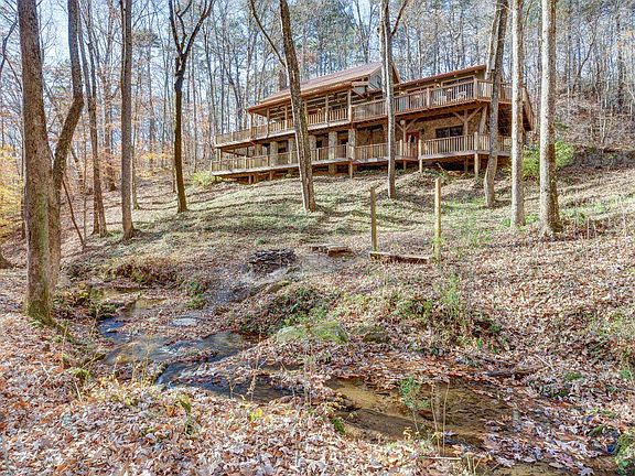 ONE OF A KIND SETTING! Check out this 3BR/3BA LOG home on 14 wooded acres with a beautiful stream & cascading waterfalls; just 2 minutes from town! End of the road location with complete privacy; No HOA. You'll love the wrap around porches & large decks overlooking the noisy spring-fed creek. Huge great room is perfect for family gatherings, plus there's a cozy living area w/rock fireplace (woodstove); dining area & rustic kitchen. So much character! Bed & bath on each level, tile showers, the upper level features 2 LOFT areas. Finished basement has BR/BA & area for game room or home office, complete with built-in shelves. 2 car basement garage. Roof is 3 years old, dual fuel hvac, wood stove, public water, hi-speed internet, refrigerator & dishwasher are less than a year old. Property in land conservation until 12/31/22 with option to renew. (2021 Taxes = $3024)