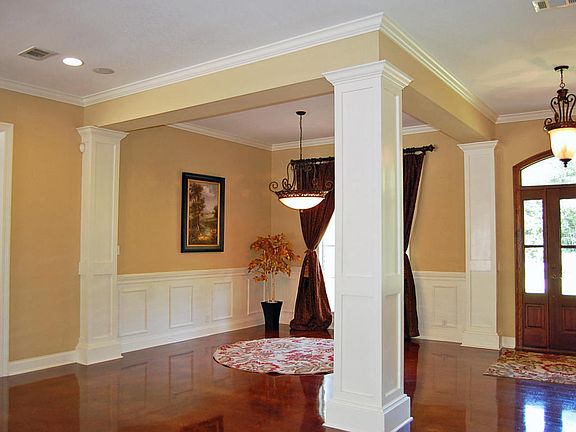 Dazzling Columned Colonial Executive Home with Sparkling Pool! Just in time to move in before school begins at nearby Longleaf Elementary. This delightful, well-planned, 3-way split plan features 3 big bedrooms with private baths on the first floor. It feels and looks like new except for the gorgeous, mature landscape. The open, gourmet kitchen features an extra-large butcher block work island, plus a large granite island with a sink and serving bar. All stainless appliances include a refrigerator. Second level offers a teenage getaway with full bath and an over-sized, equipped theater room with a granite serving bar. Party outside in a beautiful private setting in the gorgeous pool or lounge on the big covered porch with outside fireplace and TV.All this can be yours!Make your appt today!