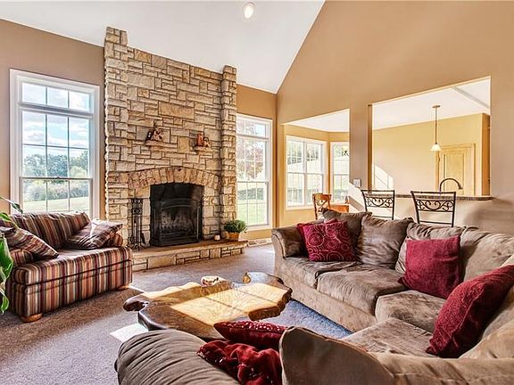 Gorgeous custom built all brick home situated on a picture perfect 3.5 acres. This home has first floor master bedroom with tray ceiling and a master bath with jetted tub steam shower and Jack/Jill vanities. Vaulted ceiling in living room features a beautiful wood burning stone fire place with a gas starter. Prepare your meals in the fabulous kitchen with island for your friends and family. Watch nature as you enjoy the view of the breakfast nook and has a formal dining room. Working at home we have a home office on the first floor for you. Walk upstairs form three more bedrooms and a full bath and check out the size of one of them ! Home has a long driveway up to the two car garage and the 3.5 acres is surrounded by the beautiful fall foliage . Your close to downtown Pittsburgh/ Airport and all major shopping and dining but living in your own private retreat . Ride your quad/ install a inground pool / plant your garden and have the retreat of your dreams !!