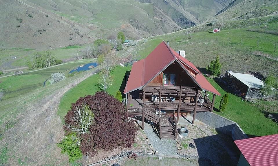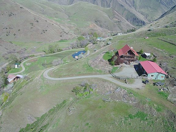 A Rare find! Log home on 43 Acres with over 2000 Ft. of beautiful year around Race Creek Frontage. This Solid 12" Log Construction Home is 2152 SF. with 3 Bedrooms and 3 Baths. Home is surrounded by covered deck to take in the spectacular 360 unobstructed views. Highly desirable location with plenty of privacy, yet just 2 miles from town. 1 Mile from the Salmon River and 3 miles to National Forest and the well known hunting Unit 18! Abundant Wildlife on the property including Deer, Elk, Chukar, and Quail. Garden with good growing season/ mild winter climate with generous winter sun exposure in this location. Acreage is fully fenced with good pasture for livestock. Creek Fed Pond, Basic Hay barn, 30GPM Well, No HOA or CC&R's. Come enjoy the simple life!