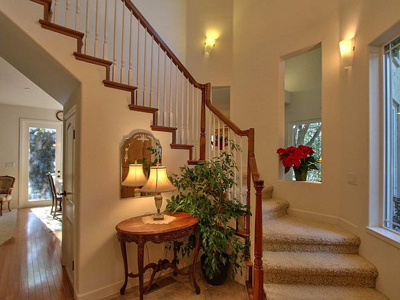 Don't miss the chance and take a look at this beautiful, custom built 3 bedroom/ 2.5 bath home. Find serenity in this tranquil and private setting on approx. 1.5, oak studded acres. The home features a tall knotty pine front door with a marble entry, Italian tile in the kitchen, hardwood flooring and carpet in the living room and bedrooms, a large indoor laundry room, oversized two car garage and tile roof. The garden shed provides for additional storage and there is a larger flat area on the upper part of the property, ideal for the garden enthusiast.