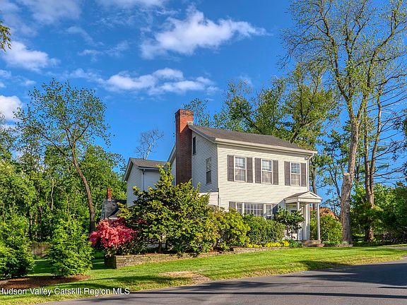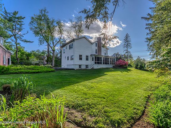 Discover one of Kingston's finest residential properties on one of it's most desirable streets. This classic residence artfully combines period architectural details with modern convenience and style. On the market for the first time in four decades, this c.1875 2-story, 3 bedroom/3 bath home (formerly farmhouse) and barn have been carefully restored and maintained over the years by a prominent Kingston family with the guidance of an architect, melding two distinct periods, traditional and contemporary, to create a stunning blend. The home is situated on a large 1.3 acre expanded city lot on Pearl Street, a few blocks west of Washington Avenue, easily accessible to Uptown's vibrant Stockade District, with all the wonderful food and culture venues it offers. It features large living and dining areas with built-in, custom cabinetry throughout. A graciously remodeled 1980s eat-in kitchen opens onto a generous 396 sq. ft. screened-in porch, perfect for Spring, Summer and Fall meals, or cozy breakfasts and relaxing evenings overlooking the property's manicured lawns and gardens. The primary upstairs suite includes en suite bathroom, lots of built-in cabinetry, and an adjoining sunken lounge area (or relaxing workspace). The second and third bedrooms are both spacious and appealing, and filled with lots of natural light. Just behind the house at the end of the paved driveway stands the remarkable barn, largely unaltered since 1875, with it's original horse stalls, hay bins, and storage rooms on the ground level and a second story loft space framed by beautiful slatted woodwork under a 15-foot gabled roof. The barn has immense potential as an artist's studio, workshop, or private gathering space - but only after some extensive renovation and alternate permanent structural stabilization. A large parcel of mostly wooded land behind this and the other homes on the surrounding blocks was purchased by the local homeowners to ensure continued privacy and to prevent potential future over-development. It creates a peaceful and protected oasis behind the home that will remain undeveloped into the future, in a setting very uncommon in a small city like Kingston. This exceptional home, barn, and unique property perfectly blend historic and aesthetic charm with the opportunity for a personalized new vision statement, making the residence an ideal primary home, a creative Hudson Valley retreat, or or an inspiring investment, in a truly one-of-a-kind setting.