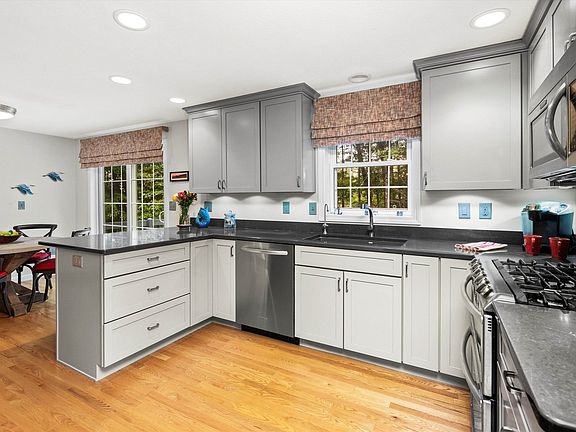 PICTURE PERFECT COLONIAL ON PRIME LOT...YOUR DREAM AWAITS! Sited on choice acreage in desirable Bedford Three Corners neighborhood, this forever home has unbeatable curb appeal. A brick walkway leads to welcoming foyer where gleaming hardwood floors, neutral interiors and an open and airy floorplan greet you. Host book club in the inviting living room where guests can easily access hors d'oeuvres and drinks in adjacent kitchen filled with stylish gray shaker cabinetry, quartz surfaces and a suite of stainless appliances. Enjoy memorable meals in the dining room or a quick bite in the breakfast nook. Peek through sliding doors to the elevated deck where you’ll take in bird’s eye views of your wood-lined backyard and glimpse sparkling water of the community’s ponds in the distance. You’ll love gathering by the gas fireplace in the cathedral ceiling great room where the flick of a switch creates warmth and ambiance in this stunning entertaining space. Upstairs the primary bedroom features ensuite bathroom and walk-in wardrobe and two large bright and cheerful bedrooms each with generous closets are sure to make everyone happy. Want more? You’ll love the versatility of the finished third floor with two bonus rooms that can be an office extraordinaire, a home gym or whatever you desire! Enjoy award-winning schools, an active community and the bonus of central a/c to keep cool on sultry days. A BEAUTIFUL HOME IN A HIGHLY SOUGHT-AFTER NEIGHBORHOOD...MOVE RIGHT IN AND ENJOY!