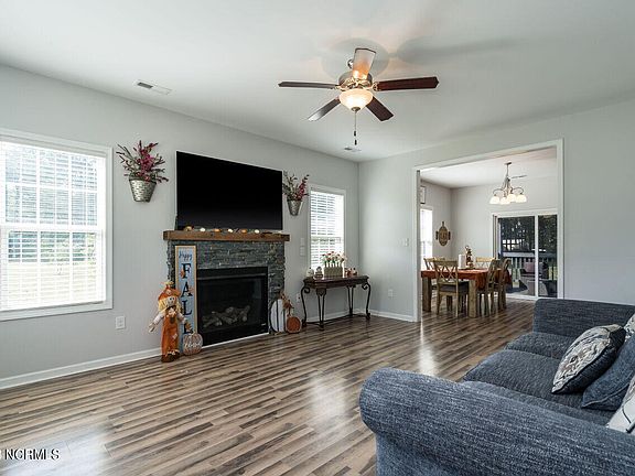 Looking for a private, cul-de-sac lot? YOU FOUND IT! Large Kitchen w/Huge Center Island & lots of cabinets ~ Spacious Family Room w/Bay Window, Fireplace and Ceiling Fan ~ Big Owner's Bedroom to accommodate ANY size furniture ~ FLAT/Private Backyard ~ Large Covered Back Porch w/Grilling Deck ~ Washer/Dryer/Refrigerator & Family Room TV CONVEY! Located close to everything, 25 minutes to Fayetteville or Goldsboro and 40 minutes to Raleigh!
