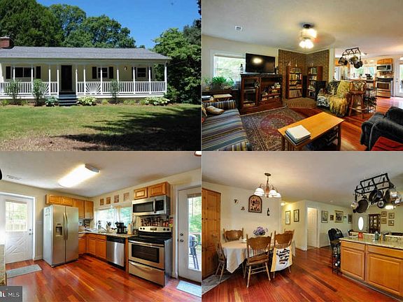 Spacious rambler nestled among trees on a beautiful and private 6+ acres in Stafford County, just 2 miles to Rt. 17 and minutes to Geico/I95. Completely renovated in 2011, this home offers loads of features inside and out making it so special including rich hardwood flooring in the living room, dining room and renovated kitchen, a bright open floor plan and 2 finished levels of living space! Walk across the charming front porch and into a sun filled living room with brick hearth for potential wood stove. The large updated kitchen has a breakfast bar, gleaming granite countertops, quality stainless steel appliances and opens to a large wrap around deck overlooking lovely yard and woodland beyond. Three main level bedrooms share the well-appointed full bath. Lots of space for relaxation, media, games and exercise in the fully finished walk out lower level with huge family room with brick wood burning fireplace, den, bonus room and full bath plus mud room and laundry room! Roof is less than two years old, HVAC less than eight years old. Home has 2 sheds and 100+ yards of frontage for possible potential to be subdivided.