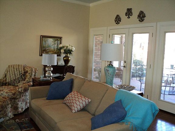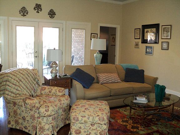 Custom Built only 9 years old, wood floor, 10 ft ceiling, two sided fireplace, split bedroom plan, kitchen w/ beautiful stained cabinets, granite counter tops, some pull out drawers, lg brick covered patio, plus extra patio, beautiful landscaped w/iron fencing, Plantation shutters thru out. All info subject to verification.