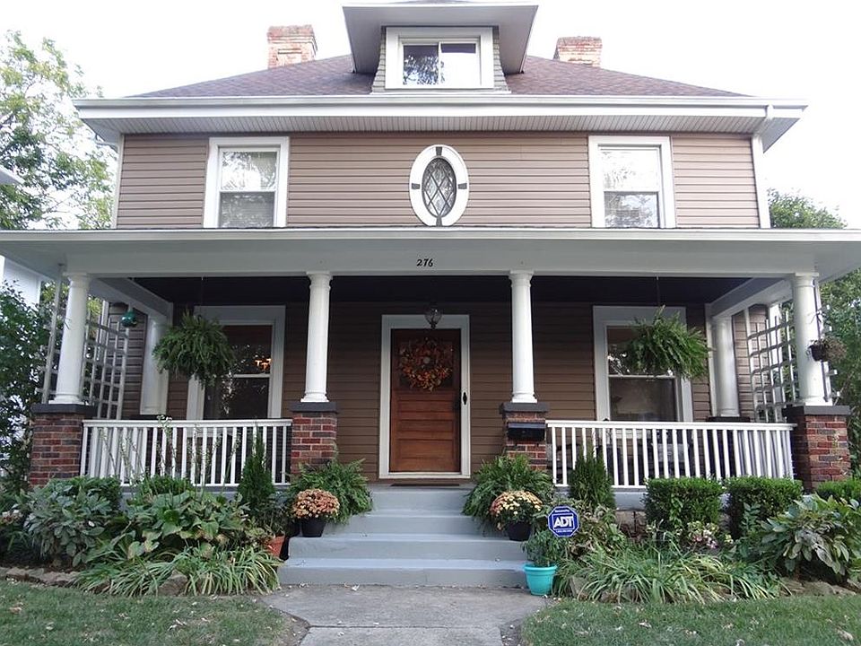 Large, gorgeous home full of charm with original wood details and hardwood floors throughout! First floor perfect for family and entertaining friends - dining room open to living room with 2 fireplaces and lots of natural light, finished off with an extra family room, full updated bathroom, and newer appliances in kitchen. Second floor includes 4 spacious bedrooms and full remodeled bathroom. As a bonus, finished third floor can be used for office, play room, or 5th bedroom. Full unfinished basement provides lots of potential. Enjoy your outdoor living space including large front porch, back deck, play set, fenced yard, and detached 2 car garage with new metal roof. Updates include: new roof in 2011, new siding, bay window, electric panel, and new furnace in 2008. Truly a stunning home, ready for you to move in!