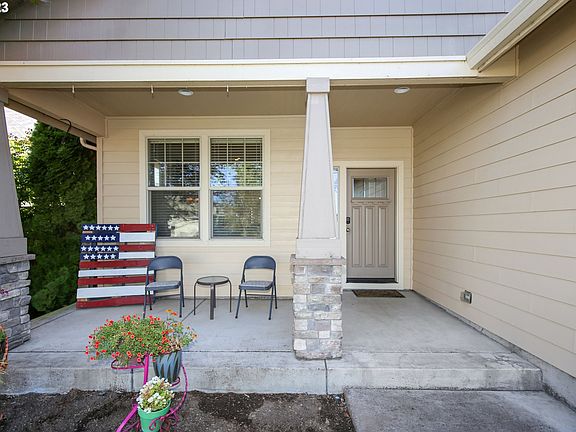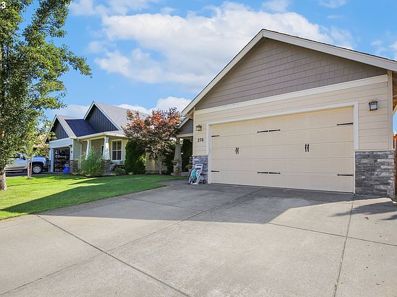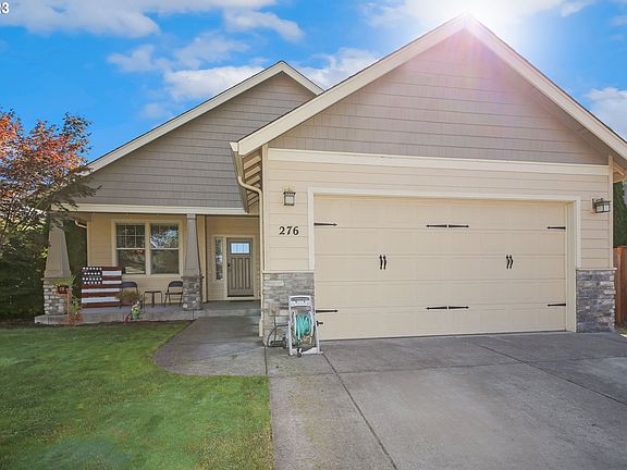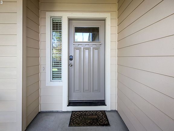 *** Seller is now offering $10,000 credit to use as a rate buydown, closing costs or prepaids *** This adorable one level home is so inviting from the covered front porch to the cozy gas fireplace. You'll love the vaulted living & dining room ceilings. The home is super efficient with the gas oven range & outdoor gas grill connection, gas water heater, electric forced air heating & heat pump. A step-in shower & walk in closet highlight the primary suite. The kitchen has granite counters and stainless appliances that all stay. The indoor laundry room (with washer & dryer that stay) leads to the attached 2 car garage with tons of storage & spacious parking out front. The raised beds on the side of the house will be perfect for the spring & summer garden seasons! It's conveniently located close to schools, shopping centers & community parks, only 10-15 minutes away from Eugene, about 30 minutes to Corvallis & 9 minutes from the airport.