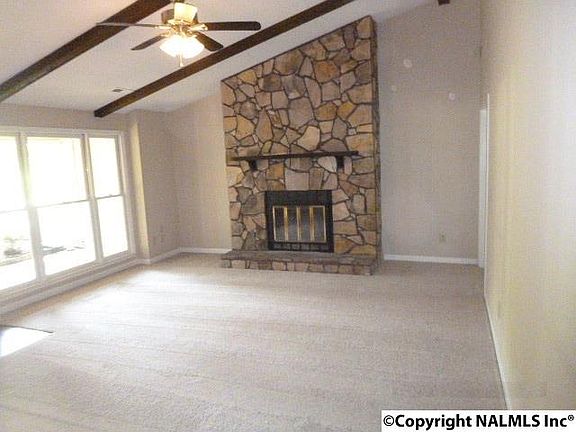 Delightful Ranch home in Meridianville is Move In Ready! Freshly Painted Interior & Exterior, New Carpeting, Updated Kitchen with New Counters, New Dishwasher, New Range, New Microwave, New Vent Hood & Freshly Painted Cabinetry! Spacious greatroom has vaulted ceiling & inviting fireplace. Three good size bedroom, 2 full baths all on a large shaded lot with relaxing deck and fenced backyard. Call now to see all this fantastic home has to offer!