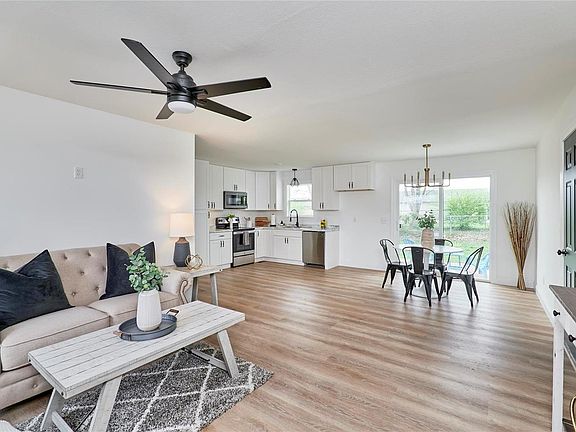 New laminate flooring throughout the main level with fresh interior paint and new tiled floors in the bathrooms. Spacious living room leads you into an updated chefs kitchen. Kitchen offers 42 inch custom, soft closed cabinets & brand new stainless-steel appliances. Off the kitchen/ dining area open your new sliding door to a fenced in yard w/ a patio & separate concrete pad for a hot tub or shed.