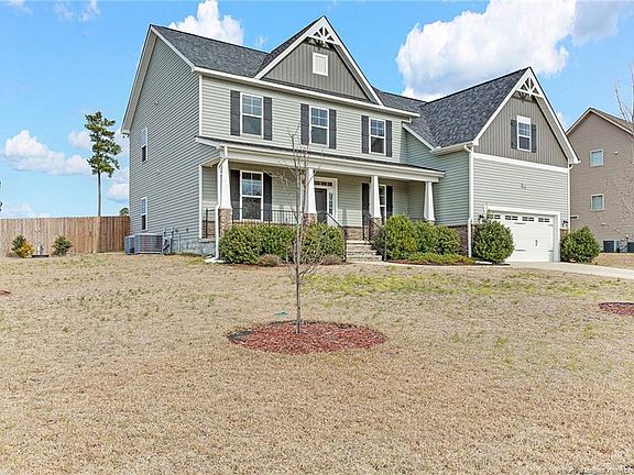 This great family home is the Roosevelt floorplan with over 3300 square feet of open, usable space that has been freshly painted & is move in ready. It is located in the popular Sinclair neighborhood close to Ft Bragg & nearly equidistant to Fayetteville or Pinehurst.You enter from the covered front porch into the spacious main floor through the 2 story Foyer with the Living Room/Study on the left & the coffered ceiling Dining Room to the right all with rich wood flooring. The Dining Room opens up to the oversized Great Room with gas log fireplace that is fully open to the large Kitchen. The gourmet Kitchen has granite counter tops, an island, bar top seating, stainless appliances, large pantry, more wood flooring & it also has an informal & cozy Breakfast Room overlooking your private back yard. Finally there is a downstairs Flex Room with closet & entry to the downstairs full bath.