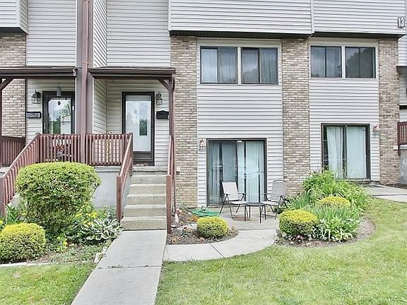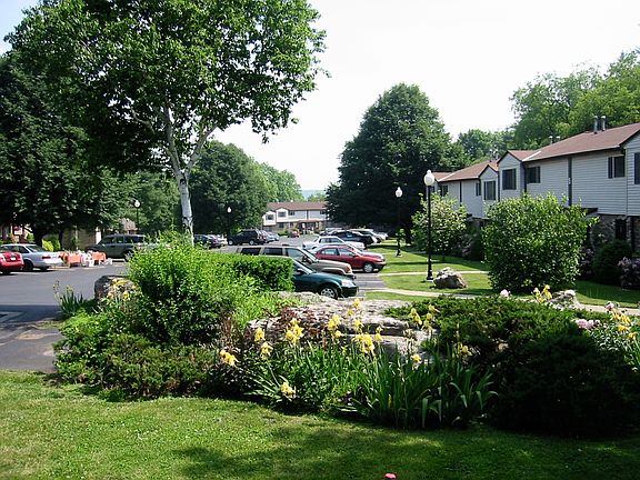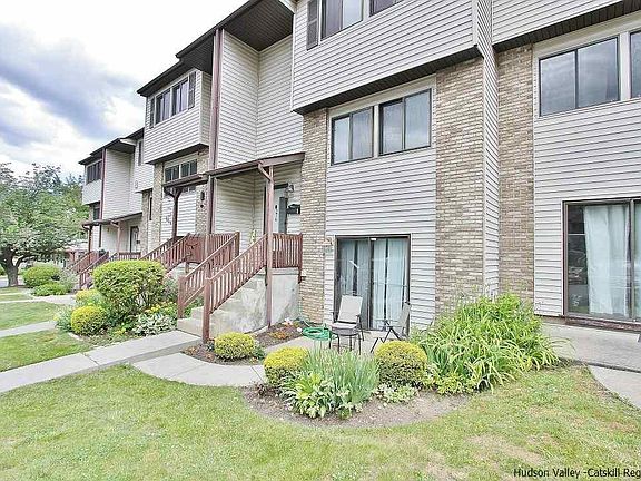 Three story townhouse is conveniently located close to Uptown Kingston, the Bus Station, Thruway, shopping and schools. Main floor is open L-shaped living and dining room, kitchen has oak cabinets and eat-in area. Dining room walks out to a spacious back porch perfect for the grill and summer dining. Top floor offers two large bedrooms, a full bath and walls of closets. The lower level is walk out, currently used as a 3rd bedroom but could make a great den featuring a brick wood burning fireplace and sliders going out to the front patio. There is also a large storage closet and utility room with washer and dryer on this level. The townhouse has a newer natural gas heating system and natural gas hot water heater. Unit is currently rented on a moth to month basis for $1,375 plus utilities. The complex houses a fenced community pool with hot tub and clubhouse. Assigned parking space is located steps from front door of the unit with many extra visitor spaces. Common fee is $230 per month which includes lawn, snow,pool, clubhouse and all exterior maintenance.