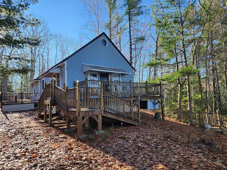Terrifically Charming Waterfront Home with Airbnb or Investment Possibilities! Majestically situated on a 09.0-acre cul-de-sac lot with 150' of lake frontage, this 2BR+/1BA,900sqft residence provides a wonderfully tranquil lifestyle for those seeking a quite and cozy getaway. Offering a mountain retreat-inspired aesthetic, the interior features gorgeous woodwork, an openly flowing floorplan, tons of natural light, a skylight, cathedral ceilings, a large living area, and a kitchen with a gas range/oven, ample cabinets, and a refrigerator. Both bedrooms deliver comfortable accommodations, while the loft may serve as a 3rd bedroom or office. Entertain outdoors on a spacious wood deck and bask in the views of Bedding Lake! Other features: detached 2-car garage, laundry area, private well and septic, current owner uses heat pump (must install alternate heat source to enjoy during winter), potential ice fishing, winter snow plowing included (Road Association), and more! Call for a tour!
