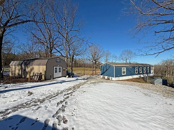 Almost new manufactured home on 10 acres m/l of pasture and a large 16x40 Bald Eagle Barn!! This 16x70 custom built Clayton Home sits perched on the hill overlooking a large pond in a small valley that's recently been fenced & cross fenced for your livestock! It comes with one of the largest shops Bald Eagle Barns builds. It has 220 power, is heated/cooled and ready for your wood/hobby shop! There's also a smaller 12x16 building. Enjoy watching sunsets and deer/turkey run through the valley from the covered back porch or entertain guests in the open concept living area. The 2 bed 2 bath, 992 sq. ft. home has a main suite that includes an actual tile shower, double vanity & walk in closet. This is just a short drive from Cave City, Strawberry River and more! May qualify for a VA Loan.