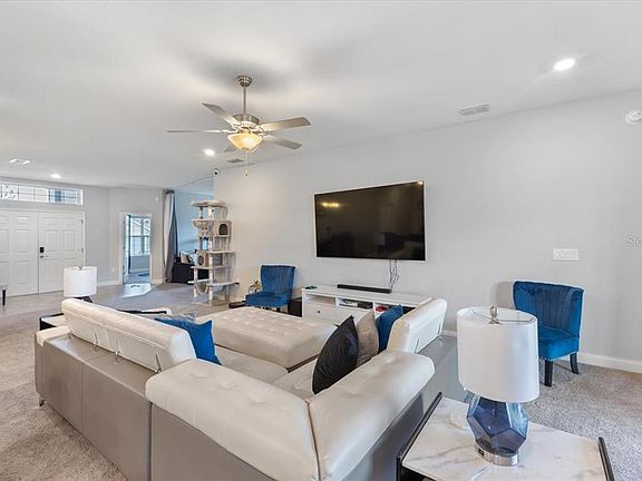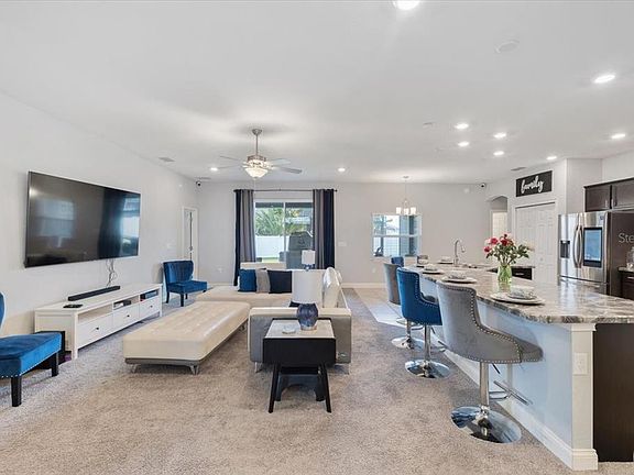 Welcome to Juliana Village, a gated Highland Homes community with private ambiance and beautiful, open conservation areas. This 2021 built home features 5 bedrooms, 3 bathrooms, a den/office, a wonderfully open floor plan and luxurious features throughout. Set on a beautifully landscaped corner lot with Florida-friendly plantings, and water view from the large front porch, this property boasts impressive curb appeal. This CORNER LOT provides easy access to the backyard to add your ideal pool! A grand double-door entry welcomes you into a light-filled interior with high ceilings, and a spacious, 3-way split-bedroom layout perfect for both everyday living and entertaining. The back bedroom with a private bath and separate entrance to and from the exterior could easily serve as in-law or multi-generational suite. The formal dining area flows seamlessly into the large great room, creating an open and inviting atmosphere. The well-appointed kitchen features, stainless steel appliances, a tasteful backsplash, ample cabinetry, a pantry, and a expansive breakfast bar for casual meals and entertainment. Each bedroom offers generous space, while the primary suite stands out with its massive walk-in closet and private, ensuite bathroom complete with a hydro-spa tub, walk-in shower, and dual sink vanity. At the back of the home is an enclosed and screened-in patio for year-round enjoyment. Auburndale provides small-town living near Orlando and Tampa. The home is centrally located in the Lakes District, surrounded by six lakes, parks, shops, restaurants, trails, and natural areas—all within walking or biking distance. Outdoor enthusiasts will appreciate access to six boatable lakes in the area, offering opportunities for kayaking, fishing, and enjoying the water. Schedule a private tour today.