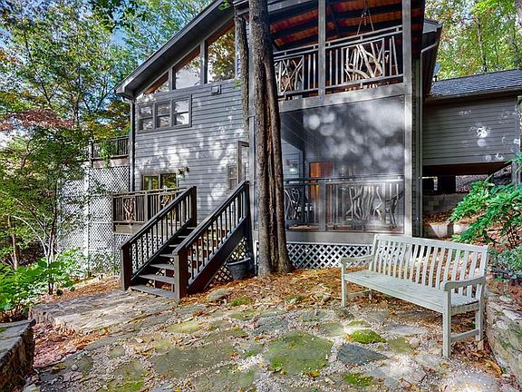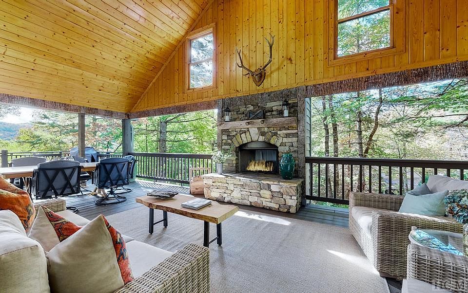 Retreat and relax in this rustic chic mountain getaway only 5 minutes from the Cashiers Crossroads for nearby dining, festivals, and shopping, as well as near Panthertown Valley, the "Yosemite of the East." The open concept for the main living area is complemented by both the primary and secondary bedrooms on the main level for convenience and comfort. The spacious covered deck expands outdoor living with ample dining and seating around the wood burning fireplace with a relaxing view of the ridge line. Cathedral ceilings and a grand fireplace greet you from the moment you enter the house. A beautiful owner's suite with fireplace has a remodeled en suite bath, 10x15 walk-in closet and private porch. The sleeping loft with a bathroom has room for two queen beds or a bedroom/office. The lower level family room with 4th fireplace is comfortably sized for additional living with a side deck to backyard. There is beautiful stonework throughout the yard and a gardener's delight with numerous blooming flowers, plants and trees. Recent updates include a bathroom renovation in the primary bedroom, new HVAC and dual fuel heat pump/furnace, new synthetic shake roof and skylights, exterior painting, new 4 bedroom septic, crawl space encapsulation and dehumidifier, new chimney caps and chimney repairs, electric dog fence and tree trimming to open up the mountain view. This property is just right for anyone looking for a wonderful home in a very nice centrally located neighborhood with waterfalls and streams throughout. Take a 3D Matterport Tour - https://my.matterport.com/show/?m=piFiGCWzk9M&brand=0
