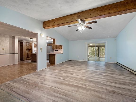 Peace and privacy abound at this 3 bedroom 2 bath ranch. A short drive to Utica, close to Rt 5. Bring your things and move right in. 1 car garage under the home and a 2 car garage with lean-to detached. Amazing sun room on the back of the home overlooking the stream below. Nice size deck attached for entertaining. Home is ready to move in, and being sold as-is.