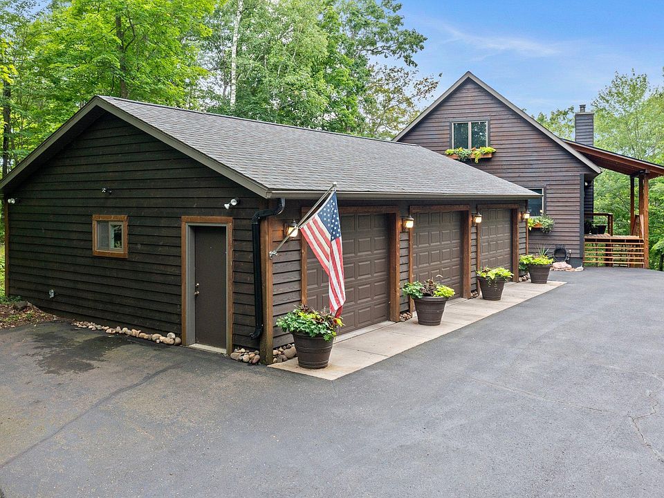 THE TREE HOUSE – Nestled in this magnificently matured wooded lot you find this one-of-a-kind chalet that has been impeccably cared for with open concept living dining & kitchen that leads out to your fabulous relaxing composite sun deck, perfect for entertaining. Main level also boasts a gorgeous primary suite, laundry room & guest 1/2 bath. The loft allows for office space, games or another bedroom. The lower level adds 2 more bedrooms, full bath, & a great family room that leads out to a covered deck. 40x26 detached heated garage gives you all the storage you will need. Thoughtfully landscaped with maintenance free perennials to maintain the incredible uniqueness of this property as you walk by your firepit area to a meandering path to the lake for ease of driving to the lake with a recreational vehicle. Quality, space & privacy located just outside of Cumberland and within 1 ½ hours to the Twin Cities on sought after Sand Lake.