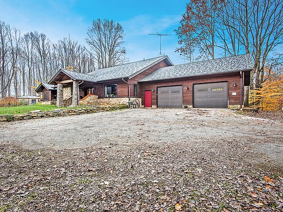 Welcome home to this impeccable, custom-built timber-framed home perfectly situated on 25+ acres for maximum privacy. This captivating home features only the best and highest-grade amenities. Enter through the solid mahogany front doors and into the open-concept floor plan with fabulous hardwood flooring throughout. A spectacular stone fireplace highlights the charming living room, complete with vaulted ceilings. The living room opens to the custom designed kitchen, featuring granite counters, stainless steel appliances, and custom walnut cabinetry that are sure to make the kitchen the gathering point of the house. The luxury master-suite features features custom stamped-concrete floors, vaulted cedar ceilings, a wonderful walk-in closet, and access to a private patio. The master bath is a dream - custom walk-in shower, granite counters, and a large garden tub. Youll love entertaining at this house - the basement features a walk-out to the rear patio, beneath the large deck. This magnificent home is one you will not want to miss with radiant in floor heating, walnut window seats, cedar ceilings and perfection at its best. Owning this private, paradise of a home is a once-in-a-lifetime opportunity, dont miss out!