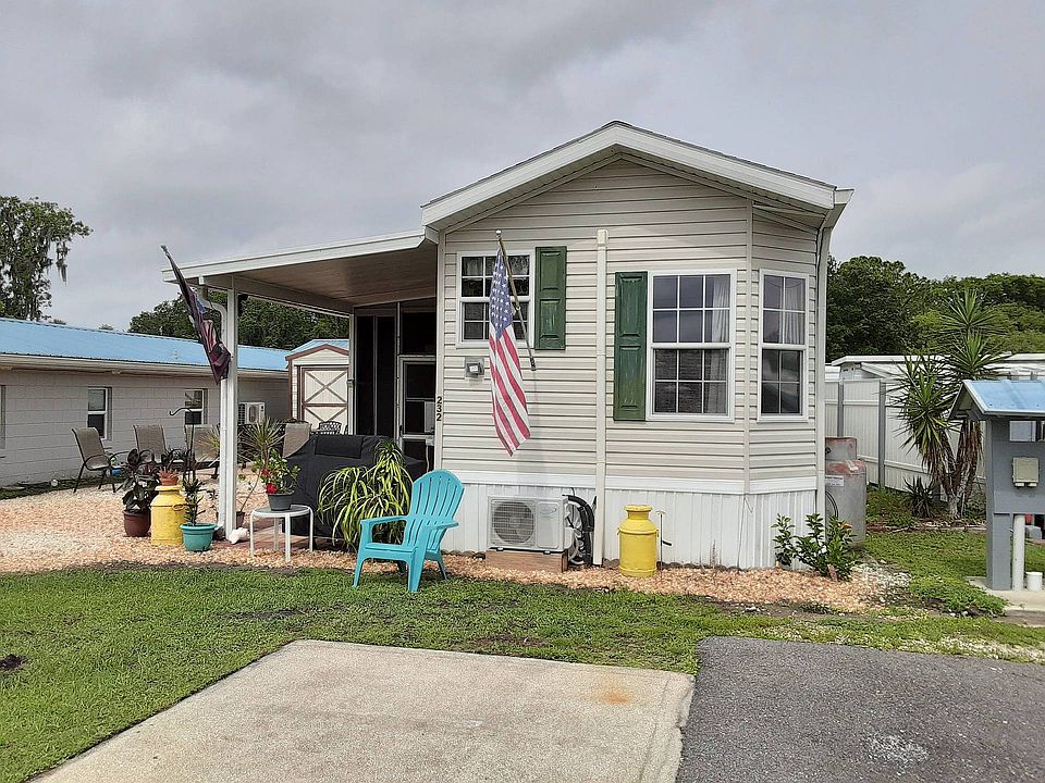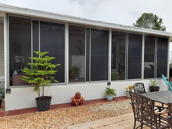 Just steps from the St. Johns River, you will find this gem that fulfills everything on your wish list. All ages are welcome in this section of the community. This 2003 park model is a spacious 1/1. Many upgrades have been made including an on demand hot water heater, new floors in the bedroom and bath, new toilet and light fixtures. A stone patio was added on the side of the home and comes complete with misters that provide a continuous spray of mist to keep you cool while enjoying the outdoors. A private outside shower is a great addition to the back of the home to wash up after a day on the boat. A beautiful wood feature wall adds interest to the living room. Windows are double pane tilt in for easy cleaning and energy efficiency. A mini split A/C and heater was also added and cool the home very inexpensively (the central A/C and heat pump work fine). An adorable electric fireplace adds ambience and heat for chilly days. The large Florida room has a washer/dryer hook-up and plenty of room for extra entertaining space. This community offers covered boat slips (some with lifts) for an extra fee. The community pool is heated AND cooled so you can swim year-round! A fish station, commonly referred to as the 'braggin' station, allows you to clean your fresh catch and leave the mess behind. This home has so much to offer. Come and take a look.