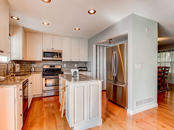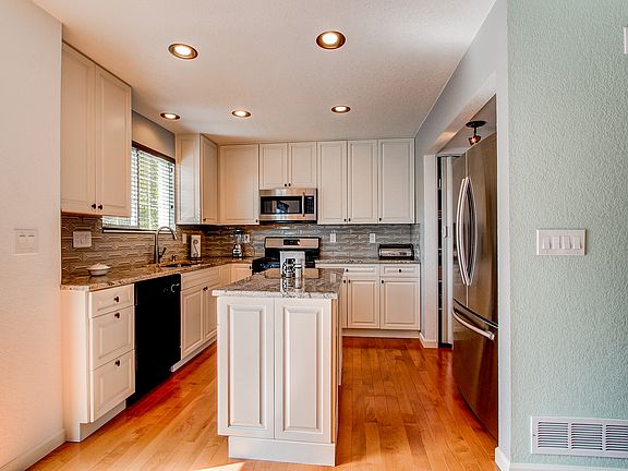 Tastefully updated, immaculate home located in a desirable Westlake Village Broomfield neighborhood. Light & bright, open floor plan. Beautiful new kitchen with "soft close", 48" white cabinets and granite countertops . Modern backsplash, newer stainless steel appliances, gas stove & recess lighting. Extended hardwood floors on main level with attractive tile entry. 3 bedrooms upstairs including spacious master suite and double sink in secondary shared bathroom. 4th bedroom and bath in fully finished basement with large entertainment/family room. Main floor powder room with granite vanity top. Newer windows and brand new sliding patio door. Newer roof. Located on large lot backing to green belt. Wood deck, tool shed and many trees in meticulously maintained back yard. Close to parks, Broomfield Rec Center & steps away from miles of waking & biking paths. Quiet dead end street. This property is located within desirable Legacy High school boundaries