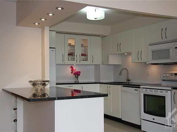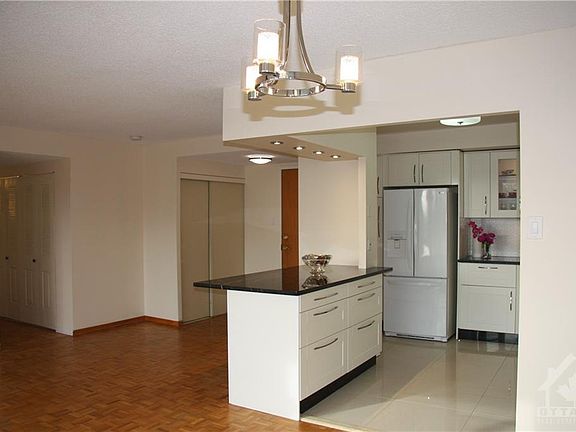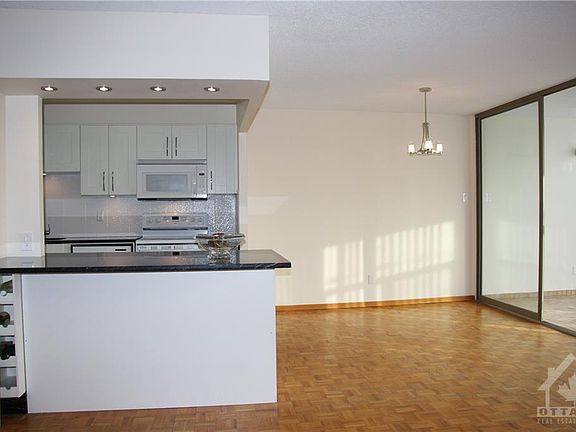 BEAUTIFULLY RENOVATED, OPEN CONCEPT BRIGHT AND SUNNY CONDOMINIUM APARTMENT. This lovely, safe and secure two bedroom, two full bathroom south facing apartment is located within walking distance to all amenities in the vicinity of Bank and Hunt club. Larger than average with a sun room, this unit's renovations and upgrades include: fresh paint, open concept kitchen with extra large granite island, pot lights and large ceramic tiles. new quartz vanity tops, sinks and faucets in the two full bathrooms, one with shower and other with bathtub. In unit washer and dryer, ample basement storage unit and secure covered parking on ground floor. The clean and well maintained building with friendly staff offers: sauna, hot tub, exercise centre, squash room, party and dance room, hobby/workshop, library, supervised outdoor pool and ample visitor parking free of charge. Condo fee includes building insurance, management, caretaker, and water/sewer. Welcome home to The Atrium. Enjoy the sun.