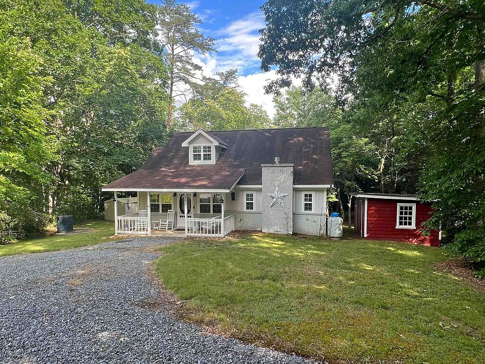 *BACK ON MARKET AT NO FAULT OF SELLER - Two words best describe this property - Rest and Relaxation. This charming 2 bedroom/2bath cottage/farm-style home was remodeled/renovated in 2018. 3rd bedroom just needs a closet. The large stone fireplace was converted to gas in 2019. Outside, enjoy the fire pit by the gentle, but audible, flowing stream. You will even have access to Fodder Creek, which is a stocked trout stream, via the property line at the bridge on Hooper Branch Rd. Owner/Agent would like to sell furnished and ready for you to move-in. Appliances and furniture are like-new condition. There is plenty of parking, close to Lake Chatuge and downtown Hiawassee. This could also make a great long-term rental or short-term VRBO/AirBNB. Current owner never rented.