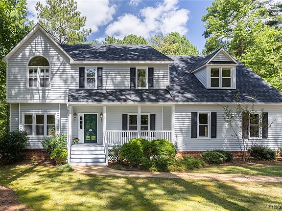 Waterview!! Adjacent to neighborhood community pond. Comcast!! Highly desirable HIGH GROVE subdivision in Goochland. 4 bedroom and 2 1/2 bath colonial home built in 1995. 3 acre lot with private driveway and water view of pond. 2 1/2 miles off 64! Wood floors in foyer, eat-in kitchen and dining room. Recently renovated eat-in kitchen with quartz countertops, island, stainless appliances, tile backsplash and 2-sided gas fireplace. Replacement windows throughout. BRAND NEW ROOF!!! Two heat pumps installed by James River Heating and Air in 2015... Water heater 2011... Vaulted ceiling in primary bedroom with walk-in closet and en-suite bath with skylight and double vanity. Large fourth bedroom on second floor with 2 closets makes a great rec room, second floor family room etc.. Laundry room/mudroom between kitchen and garage. Two car side load garage w/ pedestrian door. Rear deck overlooking private yard and pond. Shed for storage.