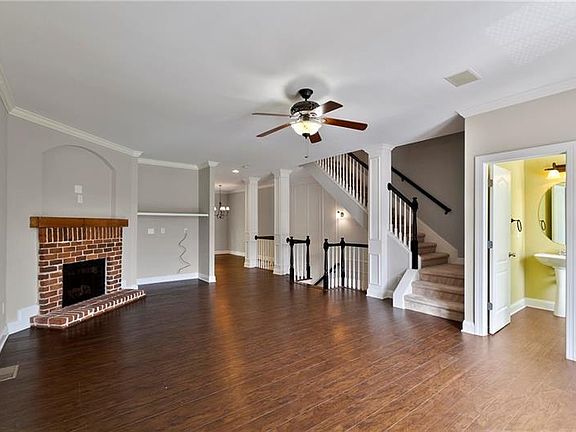 Private, Wooded backyard. This luxury townhome is complete with a full finished walk out basement. The kitchen opens to breakfast area and features granite countertops, a breakfast bar, double sliding door to walk out to private oversized deck. A fireplace in the family room with oversized balcony windows. Three oversized bedrooms with attached baths! Master bedroom with trey ceiling and an amazing wooded view! The en-suite bath has dual vanity, expansive countertops, separate shower and deep soaking tub. Home is upgraded with heavy molding, fresh painting. Swim community. Conveniently located for an Easy access to I85, the Mall of Georgia, Shops, parks and walking trails.