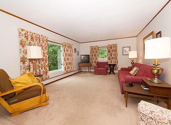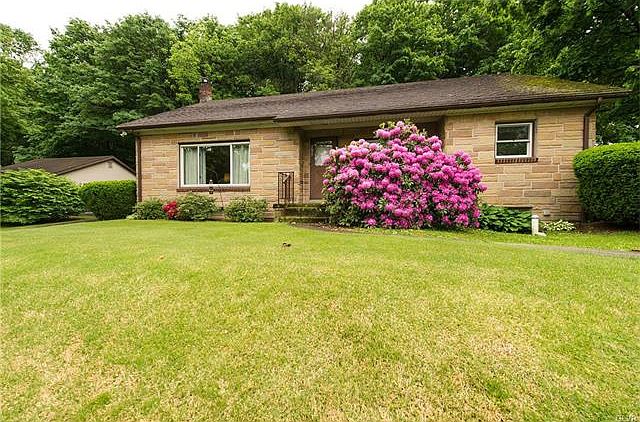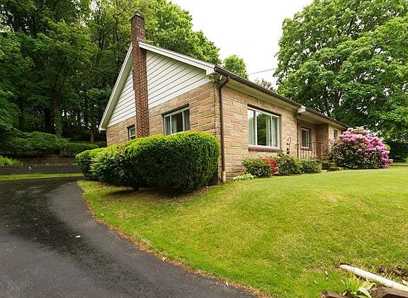 For a special family. Solid construction and well maintained w/pride of ownership evident throughout the property by the original owners. This spacious 3 BR 1 1/2 Bath Stone & Stucco Ranch w 2+C detached garage & 1+C handy carport with beautiful mountain views. Spacious kitchen with lots of cabinets and counter space. Hardwood Floors in LR, BR's & hall, replacement windows, 2 zoned oil hot water heating, central air, roomy closets & cedar closet, full basement, patio area off kitchen for outdoor enjoyment. Huge finished LL Family RM w/ Bar & Library area. Attractive tiered rear yard with nature as your decorator. A home where you can hang your heart.
