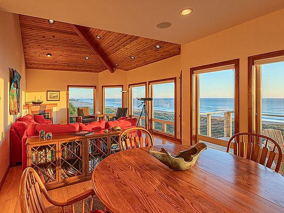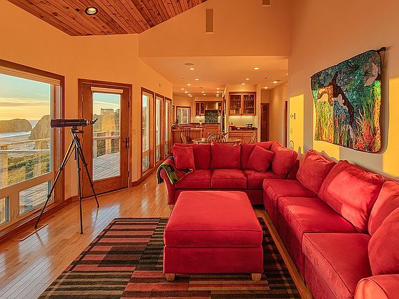 Welcome to the Bandon Beach. Immaculately maintained 2006 custom contemporary, situated on a bluff overlooking the spectacular Bandon beach and sea stacks. Located in an upscale, gated community, this 3,102 sq. ft. 3BDR/3BA home features a spacious layout, vaulted ceilings, hardwood floors, terrific kitchen, a generous master suite, and your own private path to the beach below. Move into today. A terrific oceanfront value.