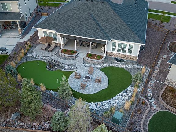 Ranch-style, modern masterpiece located in the most luxurious Southshore area...Vista Point. Toll Brothers constructed their most distinctive homes upon this premier peninsula. With .28 acres, this home is a prime example of Vista Point luxury and Toll Brother's most desired ranch models...The Montana, designed with the highest-end finishes. The kitchen, with its extra large island, is an entertainer's dream—embellished with flat-slab cabinetry; quartz counters; ceiling-height, wave-tile backsplash; superior KitchenAid® appliances, and glass-globe pendants. The great room is the perfect presentation of modern design with a luxurious, linear fireplace with floor-to-ceiling, steel-inspired tile; 12' ceilings; impressive 80" ceiling fan; wide-plank LVP floors; and stacking-slider doors that open completely...creating an open and airy ambiance. The primary suite has upgraded carpeting, plantation shutters and a seating area overlooking the resort-like yard. Featuring modern vanities; quartz counters; glass-enclosed shower and a standalone tub... all set upon concrete-style, tile; plus a large walk-in closet — the primary bath is the epitome' of luxury. The 2nd bedroom on the main has an on-suite bath. The main floor study could also be a 5th bedroom. Fitted with 9' ceilings and the same luxury finishes of the entire home, the basement features: family/rec room, 2 beds; 3/4 bath; plus 400sf storage. Open up the stacking sliders to enjoy outdoor living on the patio with motorized, privacy screens, golf on the 3-hole putting green or relax on the hardscaped patios. A 3-tier, water feature adds soothing tones of trickling water. Set upon low maintenance turf and enveloped within pampas grass (nearly 15'), the landscaping compares to the finest resorts. A stone porch was created to take in the sun-glistened views of the reservoir. Enjoy 2 Southshore amenity centers—Lighthouse and Lakehouse. Trail to the reservoir is just steps away. Tour at bit.ly/Vista-Point-at-Southshore