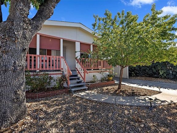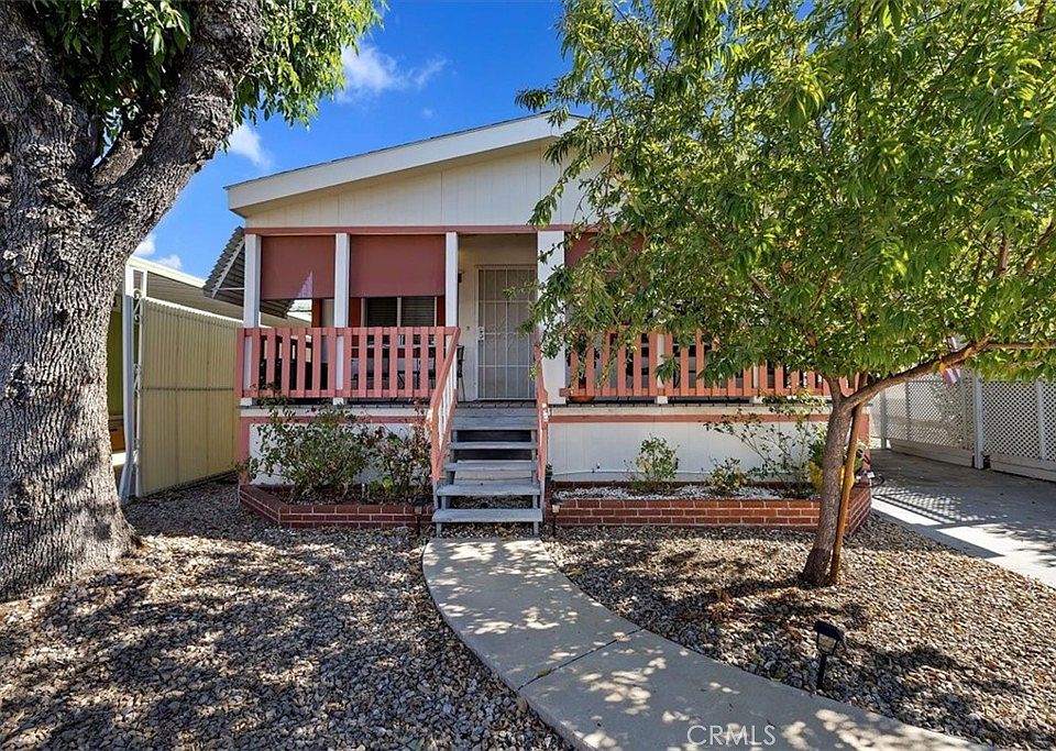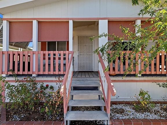 Discover the perfect blend of comfort and convenience in this charming 2-bedroom, 2-bathroom manufactured home located in desirable Sun City Estates 55+ community. Step inside to an inviting open floor plan filled with natural light, creating a warm and welcoming atmosphere throughout. Enjoy relaxing or entertaining on the spacious shaded front deck with low-maintenance rockscape . The bright living room seamlessly connects to the dining area and modern kitchen, which features granite countertops, ample cabinetry, and plenty of space for cooking and gathering. The primary suite offers a walk-in closet and a private bathroom complete with a walk-in shower. The additional bedroom can be used as a home office. Additional features include an indoor washer and dryer, a covered carport, and a workshop/shed—perfect for extra storage or hobbies. Residents of this vibrant community enjoy access to a clubhouse with pool and spa, library, billiards room, fitness center, kitchen, event rooms, laundry facilities, and a BBQ area. Ideally located near restaurants, shopping, and the 215 freeway, this home offers an easy lifestyle in a peaceful, friendly neighborhood. Don’t miss your chance to call this one home!