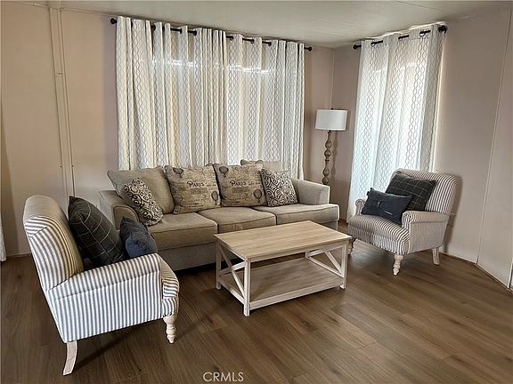 This mobile home is one of the sought after gated senior 55+ park in the area, Rent control, beautiful community, 2 bedroom and 2 full bath on a 1,536 sq ft home makes one feel calm and relaxed. It's proximity to Fwy I-215, banks, hospitals and shopping centers make it seniors choice. It is a gated community with walking trail around the park. What's more, roof is new (one year old), porch has just been renovated with a new and stable stairs and new ramp. The newly upgraded flooring is made of wood laminate for most of the parts of the house except for the bedrooms with the newly installed carpet. Waiting for the new lucky owner --- this is a ready to move in condition.