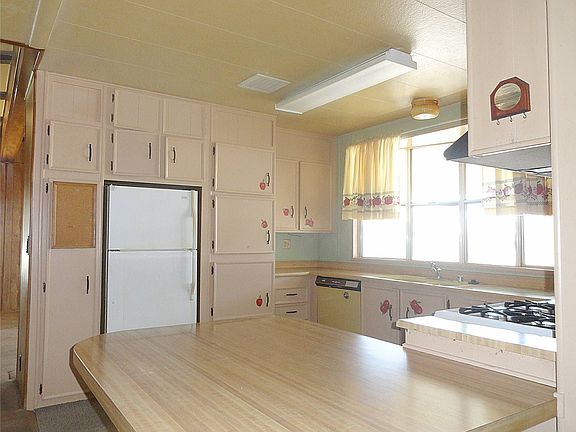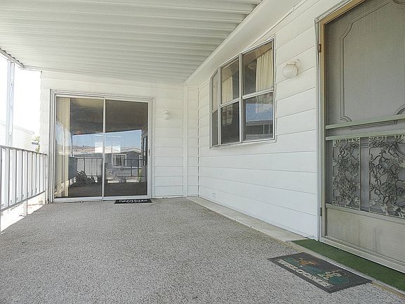 This nearly 1700 sqft triple-wide home has such an open floor plan! Not to mention the vast living rm & adjoining formal dining area, the family rm is enormous to entertain all your guests and has it's own wet bar area. The roomy kitchen with bay window (frig. included) opens to the family and dining area. 2 spacious bedrooms, including mirror closet doors, each have their own bathroom (separate shower and step-in tub in master). One of the bathrooms is also connected to the unusually large laundry room... including: the washer and dryer, a like-new freezer, a built in desk/work station, and an endless amount of built-in storage cabinets. The oversized shed is located in the back of the 4-car carport. Both the living rm and family rm doors connect to the covered carpeted porch. The owner has priced to sell and made sure the home has been throughly cleaned from top to bottom. He also upgraded with a new oversized A/C and furnace. With a bit of updating and TLC, you will have at least double the equity! Located in the Sun City Mobile Home Estates, a (55+) senior area with low space rent. Everything is in walking distance...golf, grocery stores, banks, restaurants, & doctors. What more can you ask for?