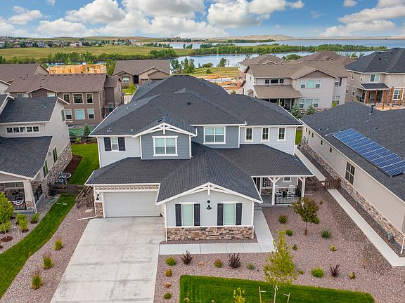 This show-stopping Ralston home is located in the premier master-planned Southshore community. Nothing compares to this amazing property with upgrades & custom finishes throughout that shines like new. Upon your arrival, you are greeted by a sun-drenched, open floor plan. You will be wowed by the vaulted ceilings & gorgeous wood-wrapped stairs. Step into the large open layout and take in the beautiful floor-to-ceiling fireplace, & backyard views with three-panel stackable patio doors. The kitchen features a massive island, upgraded appliances, beautiful leathered granite counters, a custom tiled backsplash, and a large walk-in pantry. The formal dining room is adjacent to the kitchen perfect for entertaining. In-Laws/guests can stay for days in the private main floor suite with a private bathroom & walk-in closet. The home office is located towards the front of the home, creating the perfect place to conduct business. The mudroom features a custom built-in bench with cubbies. The upper level hosts an impressive Primary Suite, featuring a luxurious, spa-designed bath with 2 sided entry shower, soaking tub, dual vanities & 2 custom, walk-in closets. Two generous-sized secondary bedrooms are adjoined by the Jack & Jill Bath. The loft offers extra flex space & the laundry room is equipped with custom shelves & cabinets. The massive unfinished basement can easily be converted into additional space if needed, such as a 5th bedroom, Bar, gym, or extra storage space. The oversized covered back patio is truly an extension of this fabulous home as you can relax, watch TV, soak up the sun or dine while the sunsets. The professionally landscaped, fenced backyard has several mature privacy trees & a beautiful hot tub including a custom privacy fence.