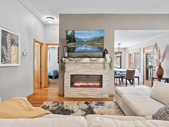 What a great resort setting to call home! This home has many updates and features such as: 158' of Lakeshore, Gradual Slope to the water, Dock System, Spancrete garage floor offering another garage underneath, Both Garages Heated and Insulated, Newer Driveway, Sprinkler System, Water Feature, Sauna, Granite, Wood burning and Electric Fireplaces, Primary Suite, Large Deck and Patio, Remodeled Sun Room, Fresh Paint and Flooring, Newer Septic lift Pump and much more!