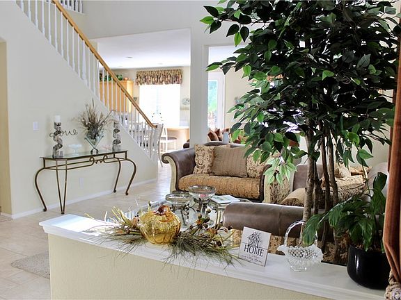 Stunning Valencia Northpark POOL home located at the top of a quiet Cul-de-sac. Front of home boasts beautiful hardscaped entry. Open the door to an open floor plan with dramatic vaulted ceilings, and numerous large windows that allow for natural light. Formal living room opens to cozy family room with slate stone fireplace, mantel, ceiling fan and built in entertainment center. Gourmet kitchen has lots of counter and cabinet space including a kitchen island and nook area large enough for a small table and chairs. Formal dining off of kitchen is currently used as a perfect sitting area. Incredible views from large master bedroom from three large windows. Private master bath includes his and her sinks plus a vanity sitting area, large sit down shower, separate tub and extra long walk in closet. Upstairs secondary bath has dual sinks and separate entry to tub/shower combo. The "resort-like" backyard is a DREAM; and with no rear neighbors, very private. Relax poolside with dramatic evening sunsets and mountain views. Super large 3-car garage with extra wide driveway... so many reasons to fall in love with this HOME!