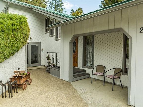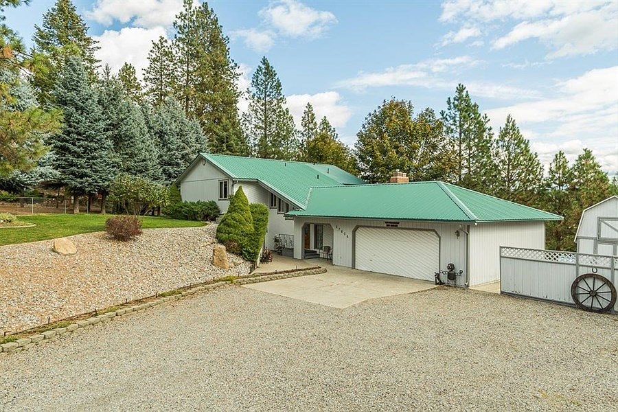 Great, unique Chattaroy acreage w/peekaboo views of Mt. Spokane. Huge master suite w/sitting room & large bathroom. Bedrooms & laundry on 1 level. Beautiful large deck off of informal dining room, open kitchen & great room. Secured gate, additional garage w/full basement.