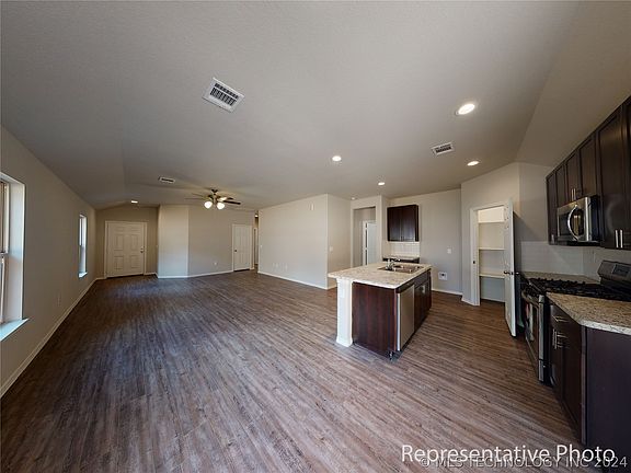NEW CONSTRUCTION! MOVE IN READY! The charming Bridgeport plan is rich with curb appeal with its welcoming covered entryway and front yard landscaping. This one-story home features 4 bedrooms and 2 bathrooms. Enjoy the large open-concept living room, fully equipped kitchen with energy-efficient appliances, ample counterspace, and corner pantry. The laundry room, conveniently located just off the garage, is perfect for any sized family. Learn more about this home today!