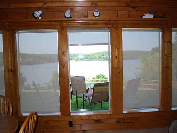 Beautiful panoramic view of Lake of the Ozarks from this 3 Br waterfront home. Nice sunroom with wall of windows where you can enjoy the view from, a covered 2 well dock, guest cottage, 20x20 workshop/garage, 40x20 carport all sitting on 1.6 ac.+/-