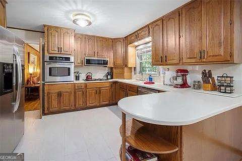 Spacious living one level. It has classic charm with some modern upgrades throughout! The spacious primary suite offers a spa-like bath with dual vanities and quartz countertops. This home is great for entertaining with a brick fireplace, separate dining area, big front yard. Enjoy outdoor living with an established yard with a deck and patio for year round BBQ's. There's a washer/dryer to make your move easier. It's nice to have a powder room for guests without accessing the other bathrooms-easy breezy. Newer HVAC (2020-21) means affordable bills. Schedule your tour today. Copyright Georgia MLS. All rights reserved. Information is deemed reliable but not guaranteed.
