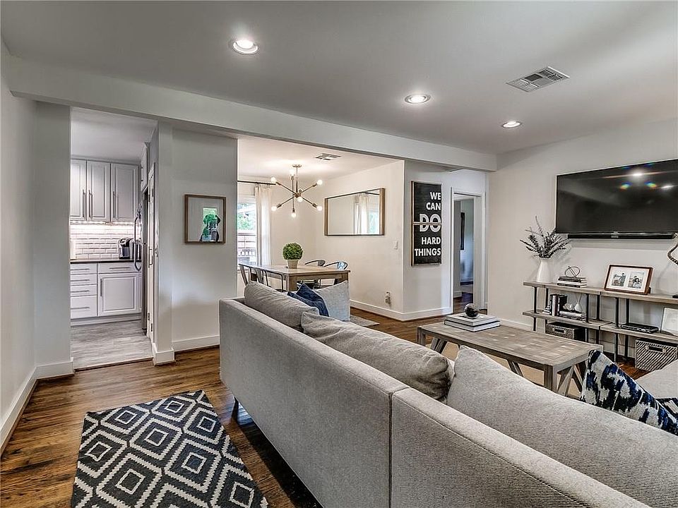 This charming and COMPLETELY RENOVATED home is a rare find! Fantastic location just around the corner from Nichols Hills and Classen Curve. Huge corner lot, with 8ft. privacy fence, wood floors throughout and a master suite! You will fall in love with this house from the moment you step inside. Open concept living and dining, with designer custom kitchen that adorns new cabinets, quartz countertops, and SS appliances! The two guest bedrooms are spacious w/high end remodeled bath between. The master suite features a large bedroom, WIC and remodeled en-suite bathroom! Double doors off the master take you out to a large deck and private backyard (also accessible from kitchen) that is perfect for entertaining. HVAC replaced 2016, double hung vinyl windows, blown in insulation in attic. Don't miss your chance to make this home yours! Offers due by 12:00pm on May 13th.