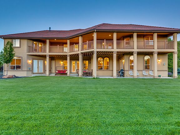Elegant living is afforded in this grand estate, with flowing entertaining spaces from indoors to out! Enjoy towering walls of windows & an expansive covered patio & upper deck overlooking the vineyard & acreage. Main level Master wing boasts cozy fireplace, patio access, 2 walk-in closets & HUGE decadent spa bath w/multi body-sprayers walk-in shower. Fabulous gourmet kitchen, perfect wine cellar, 3 XL bedrms all w/walk-in closets & dedicated bathrooms. Private theater room, foothills view! RV parking