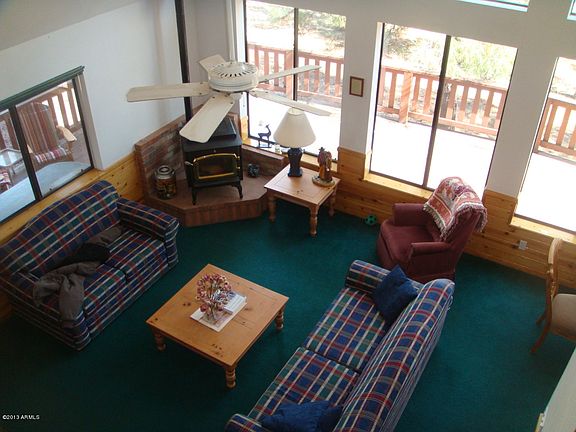 In Mogollon Airpark is a spectacular cabin chalet home. The 2 story wall of windows brings the outside in, as if you could touch the towering ponderosa pines.The great room features a wood stove fireplace, and the wall to wall windows that provide natural light and wonderful views. The second story features another large great room with 2 more bedrooms and bath. Even a balcony with endless ponderosa pine views. The oversized garage is perfect for the toys. So much to mention, this home is a great value.