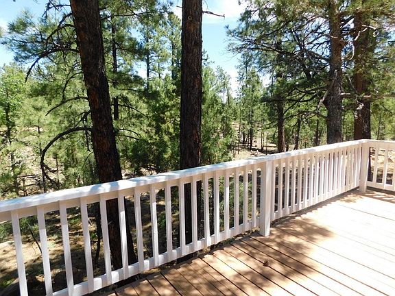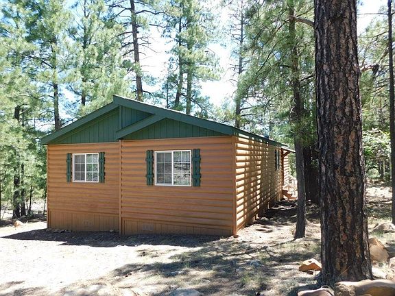 Ponderosa pine treed oasis at the end of the road! This log sided 3BR, 2BA doublewide manufactured home has a split floorplan, eat in kitchen & laundry room plus the most beautiful setting among tons of Ponderosa pines and oak trees. Set up for full time use with central gas heat, tape/textured interior, huge master bathroom w/large walk in closet, new gas range, new dishwasher, new roof in 2016 w/snow guards, a private well w/1,000 gallon water tank, 33 gallon pressure tank and insulated pump house too. Relax on the front deck with picturesque views of nature. Best yet is the owner will carry with good terms! County records show 968 SF but Affidavit of Affixture shows a 22X45 Fleetwood which totals 990 SF.