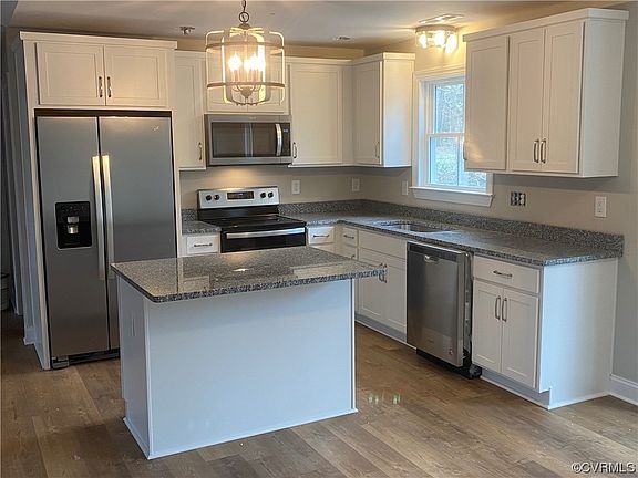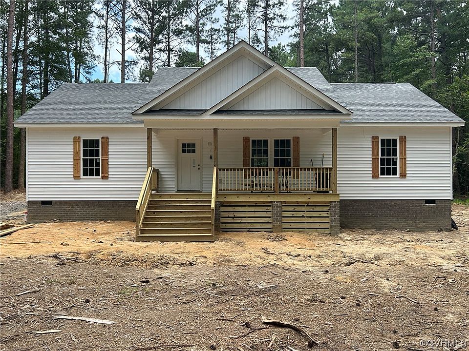 If you are looking for a new home on a larger lot and conveniently located this is the one for you. This 3 bed 2 bath home sets on almost 6 wooded acres with tones of privacy. This home has a split floor plan with a large primary beed room, walk in closet and attached bath. The other two bedrooms are on the opposite side of the home with a open living area separating them. The family room has a gas fireplace and vaulted celling. The kitchen is open and inviting with a island, solid surface counter tops and stainless steel appliances. The utility room has tones of space for a washer, dryer and other storage. Spend you afternoons on the covered front porch or large rear deck with plenty of shade from the large mature trees on the property. The main living area will have vinyl plank flooring throughout for easy upkeep. This home is well on its way to being complete and will be move in ready very soon. There is plenty of room to add outbuildings or a garage.
